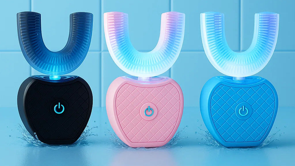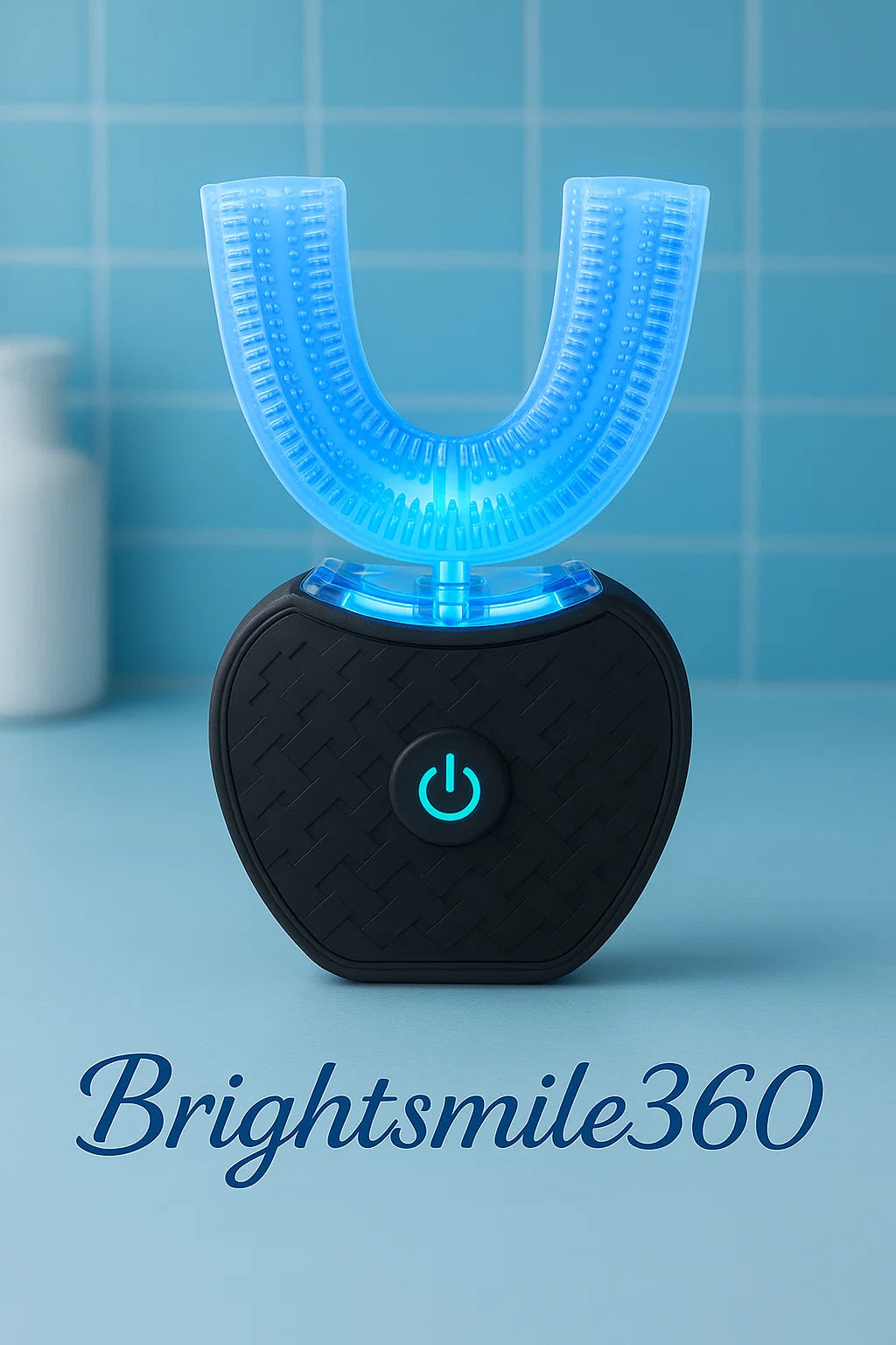 BrightSmile360™ – The U-shaped automatic toothbrush with built-in blue light technology for a faster, deeper, and whiter clean. Gentle silicone bristles, 360° coverage, and effortless design make brushing quicker, more effective, and more comfortable than ever.
